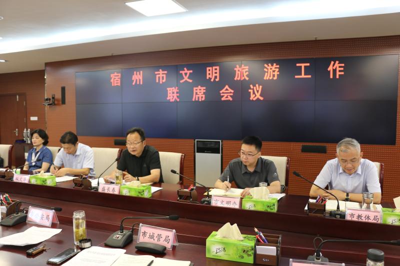 7月17日上午,宿州市文明旅游工作聯(lián)席會(huì)議在市政府第一會(huì)議室召開。市政府副秘書長(zhǎng)盛長(zhǎng)春出席會(huì)議,文明旅游工作聯(lián)席會(huì)議成員單位、埇橋區(qū)文化和旅游局、市區(qū)重點(diǎn)旅游景區(qū)、星級(jí)飯店等參加會(huì)議。市文化和旅游局黨組成員、副局長(zhǎng)縱文華主持會(huì)議。